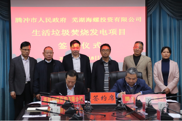 2019年3月18日,海螺創(chuàng )業(yè)與騰沖市人民政府成功簽署《騰沖市利用水泥窯綜合處置生活垃圾發(fā)電項目特許經(jīng)營(yíng)協(xié)議》,規劃日處理能力600噸,分兩期建設,一期300噸。