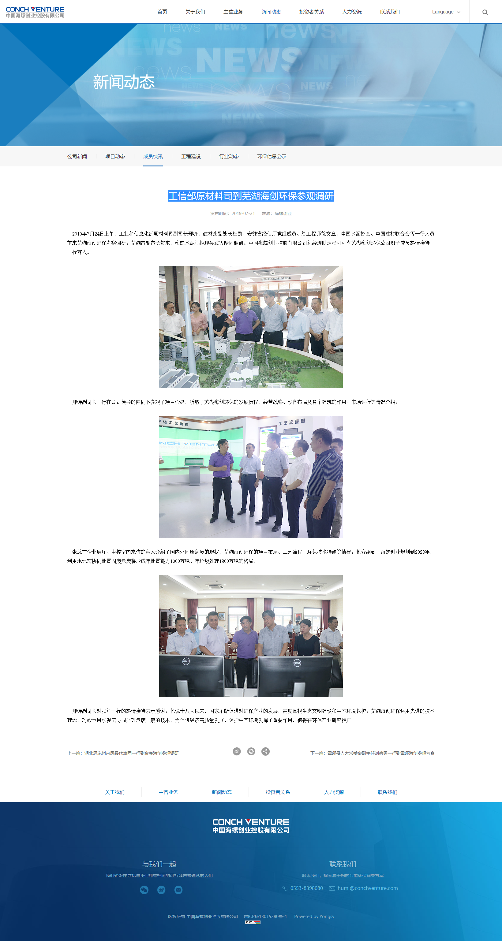 工信部原材料司到蕪湖海創(chuàng )環(huán)保參觀(guān)調研-成員快訊-中國海螺創(chuàng )業(yè)控股有限公司.png
