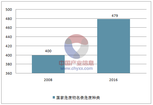 2016 年8 月,新版國家危廢名錄施行,危廢種類(lèi)從400 種上升到479 種